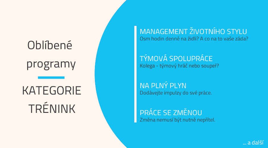 Jedná se sérii zhruba 90ti minutových školících bloků. V tuto chvílí nabízíme 12 témat a další přibývají...